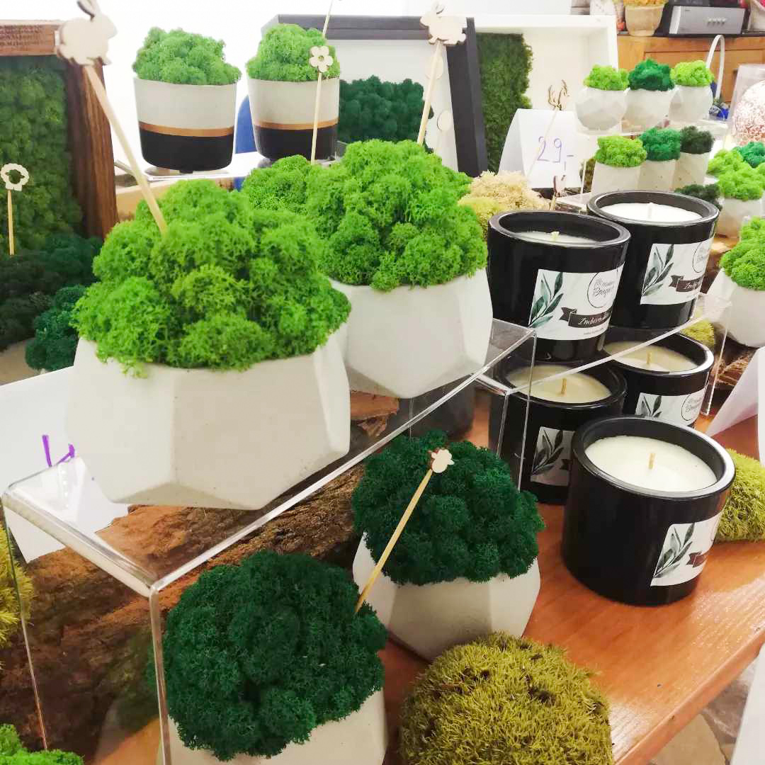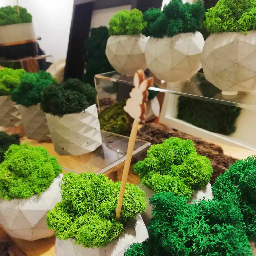 Największą popularnością cieszyły się betoniczki z mchem chrobotkiem – zarówno model MINI, jak i KARO. Podobnie świeca sojowa – IMBIRÓWKA również skradła Wasze serca. Poza tym, spędziliśmy wspólnie czas na rozmowach o dekoracjach z mchu – ich zastosowaniu, bezobsługowości, a także o tym, do jakich miejsc wybieracie je najczęściej.